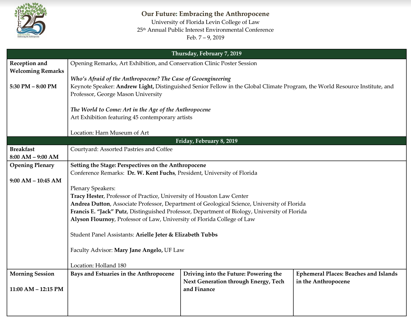 PIEC 25’s theme, Our Future: Embracing the Anthropocene, was centered around the hotly debated idea that the world has left the Holocene and entered a new epoch dominated by human impact. The move into the Anthropocene is supported by evidence that we humans have impacted the geological structure of our planet so severely that, if we were to disappear, our mark would be permanently ingrained in our planet’s fossil record. While the starting date of the Anthropocene is still uncertain, geologist largely agree we have entered a new geological epoch. PIEC collaborated with the Harn Museum, which exhibited The World to Come: Art in the Age of the Anthropocene, to give our attendees a full cultural and technical perspective. Accordingly, the PIEC 25 Welcoming Reception took place at the Harn Museum.