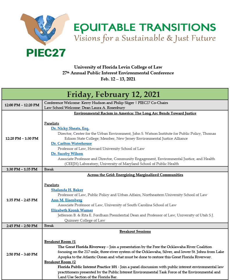 This year’s theme, Equitable Transitions: Visions for a Sustainable & Just Future, recognized that the events leading us into 2021 were a-historical in their gravity and importance. At this critical juncture, PIEC 27 explored the most urgent environmental challenges we face and the social inequities that they expose and inflame. Equitable Transitions recognized that the issues of environmental justice that pervade society are not merely the result of natural or market forces, but of deliberate policy decisions of the past and present. Acknowledging that the environmental challenges we face and the pervasive social inequities that exist share common origins, PIEC 27 envisioned bold solutions to move us toward a more sustainable and just planet.